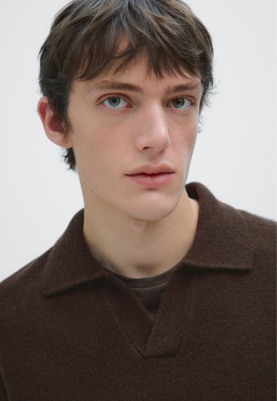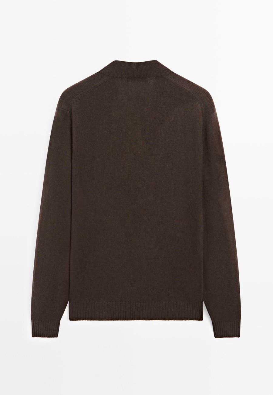 Ребристая отделка. Длинные рукава. Вязаный свитер из смесовой шерстяной ткани. Воротник-стойка. Вырез: V-образный.Материал и уход