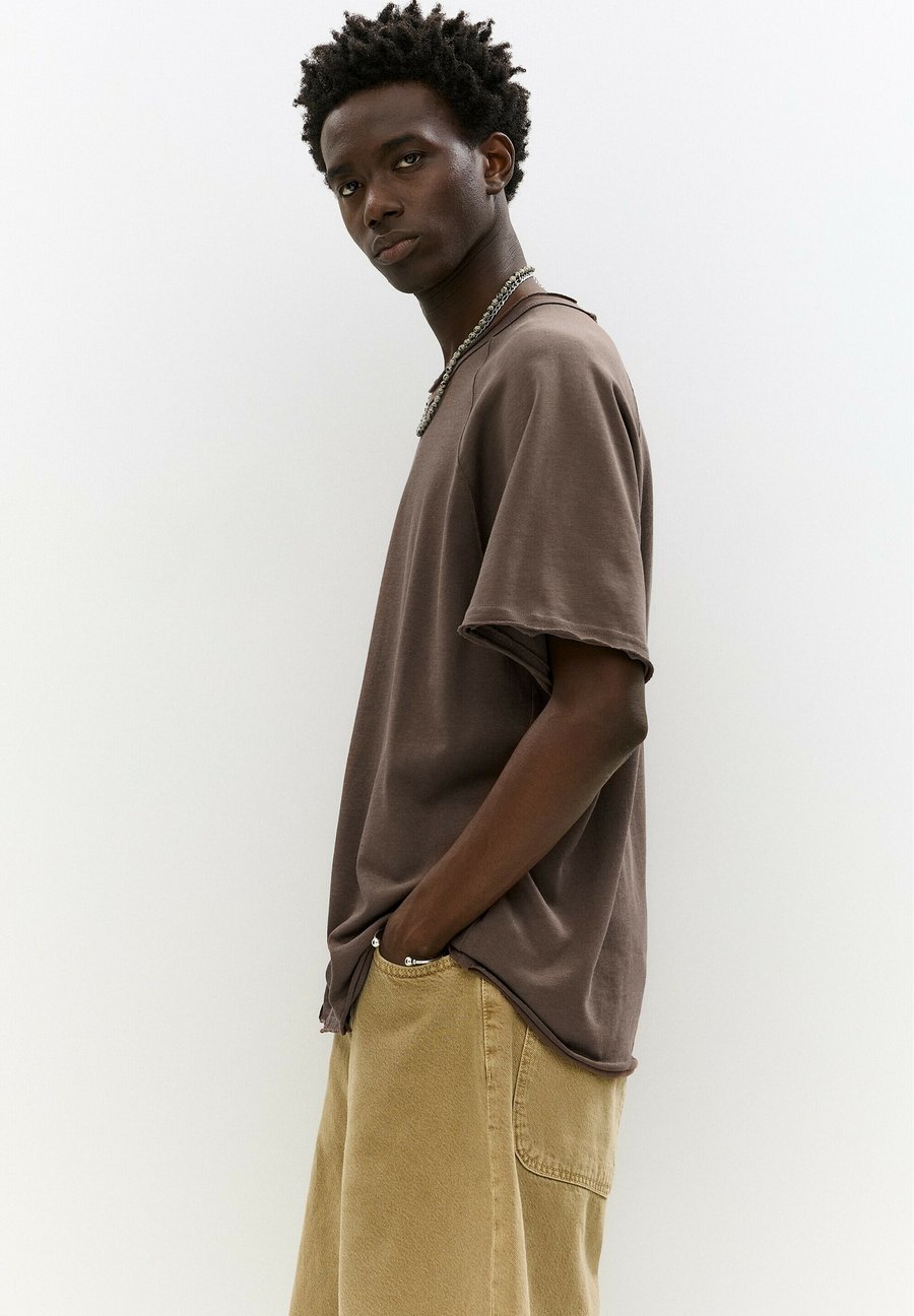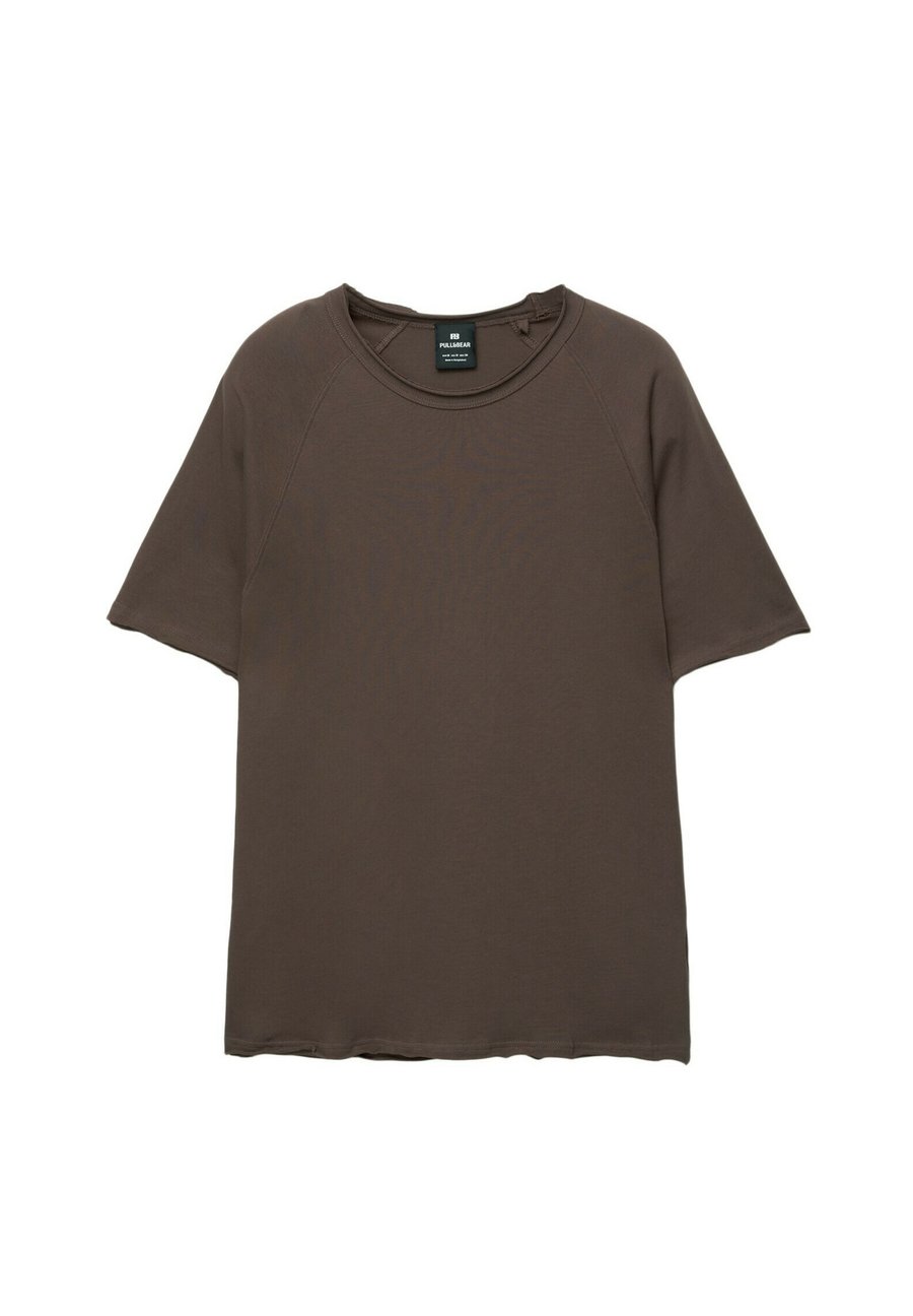 Футболка PULL&BEAR SHORT SLEEVE TRIMMED , Dark Brown