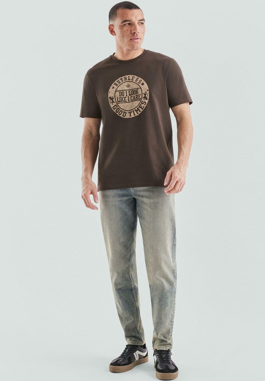 Футболка QS Print T-shirt, Dunkelbraun/Brown