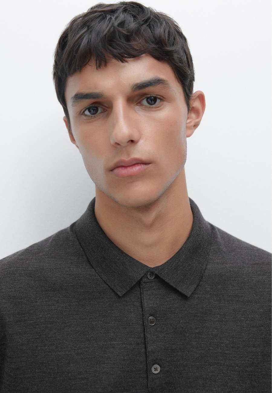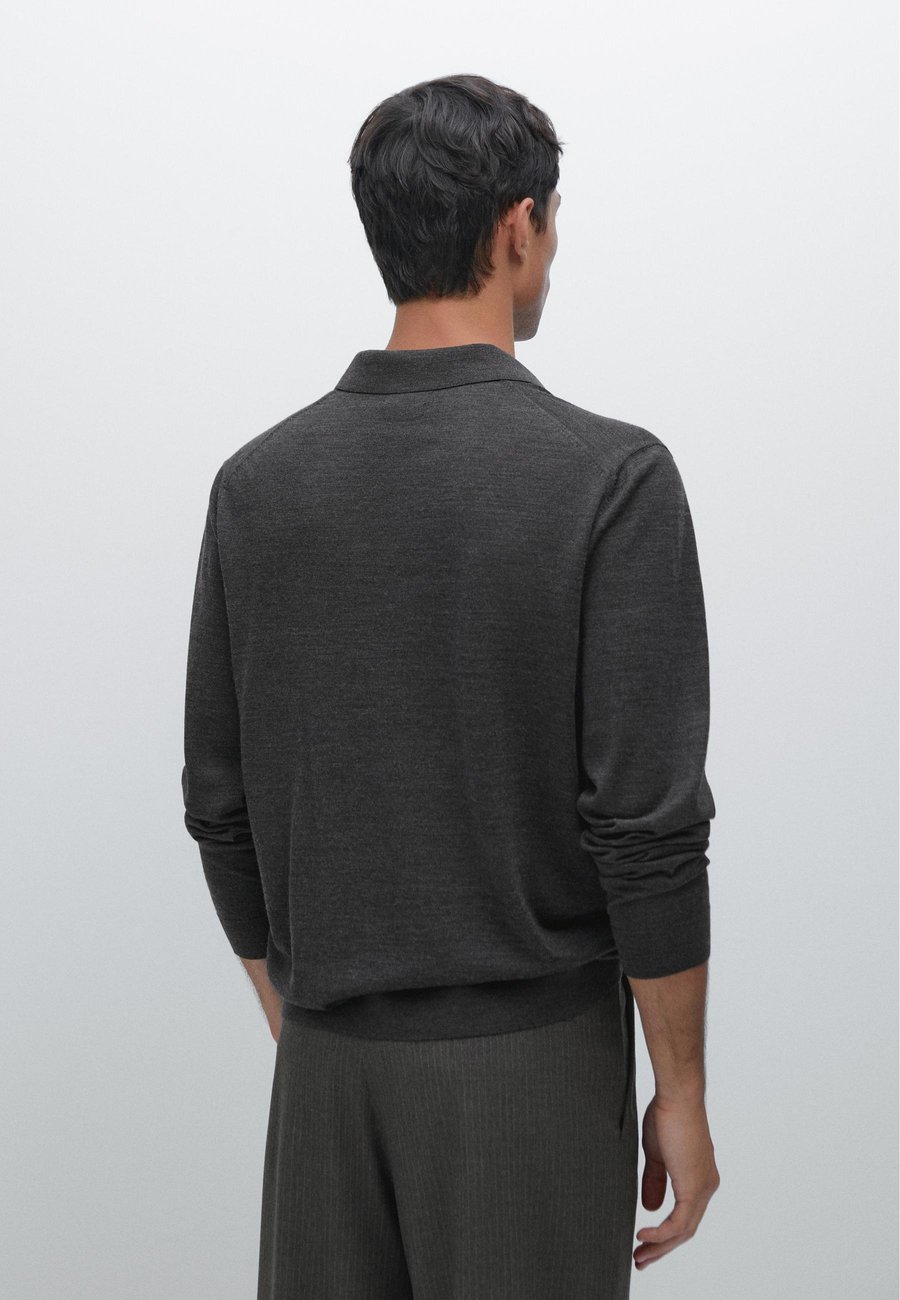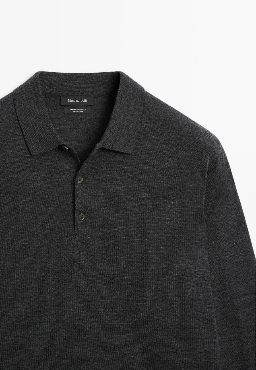 Слегка более свободный крой для большего комфорта. Ребристая отделка. Воротник-поло с застежкой на пуговицы. Длинные рукава. Тонкий вязаный свитер из 100% шерсти. Воротник: воротник-полоМатериал и уход