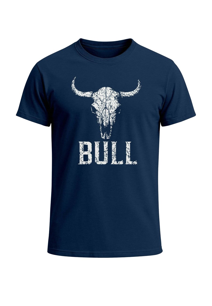 Футболка Neverless MIT VINTAGE STIERSCHÄDEL FRONT SCHRIFTZUG - KURZARM, Navy/Blue
