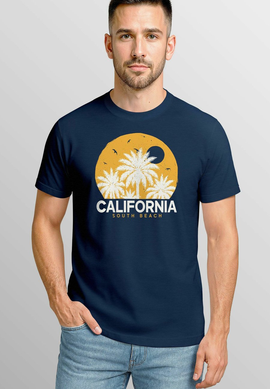 Футболка Neverless CALIFORNIA SOMMER GRAFIK MIT PALMEN, Navy/Blue