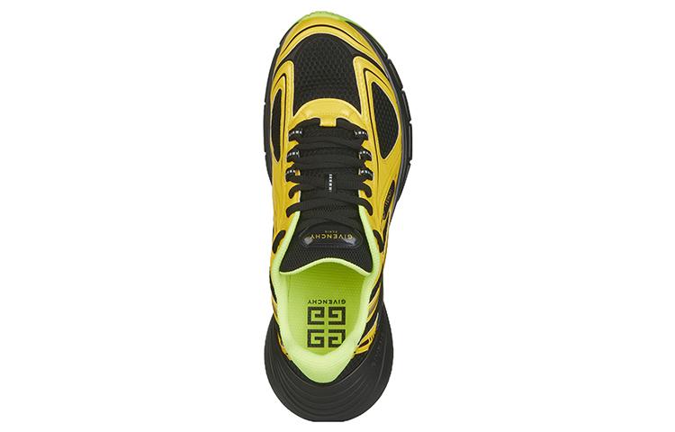 Мужские сетчатые низкие кроссовки Givenchy TK-MX Runner на шнуровке, цвет: желтый и черный, с логотипом GIVENCHY на боковой вставке и язычке, а также толстой резиновой подошвой с графическим тиснением GIVENCHY.