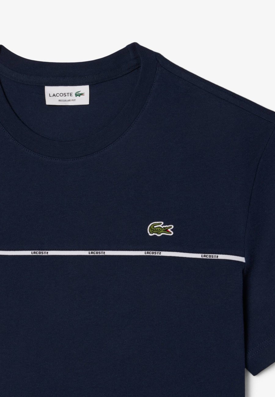 Эта футболка Lacoste из хлопкового трикотажа украшена контрастной фирменной отделкой по центру и вышитым крокодилом на груди, что придает ей повседневный шик. Вырез горловины: круглыйМатериал и уход