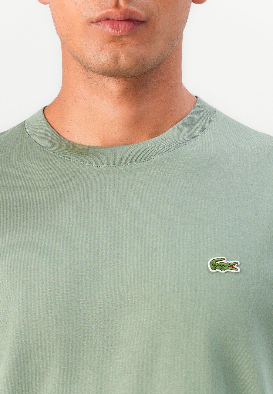 Классическая футболка Lacoste из ткани средней плотности. Универсальная вещь, которую можно носить с чем угодно, с изображением культового крокодила. Вырез: КруглыйМатериал и уход