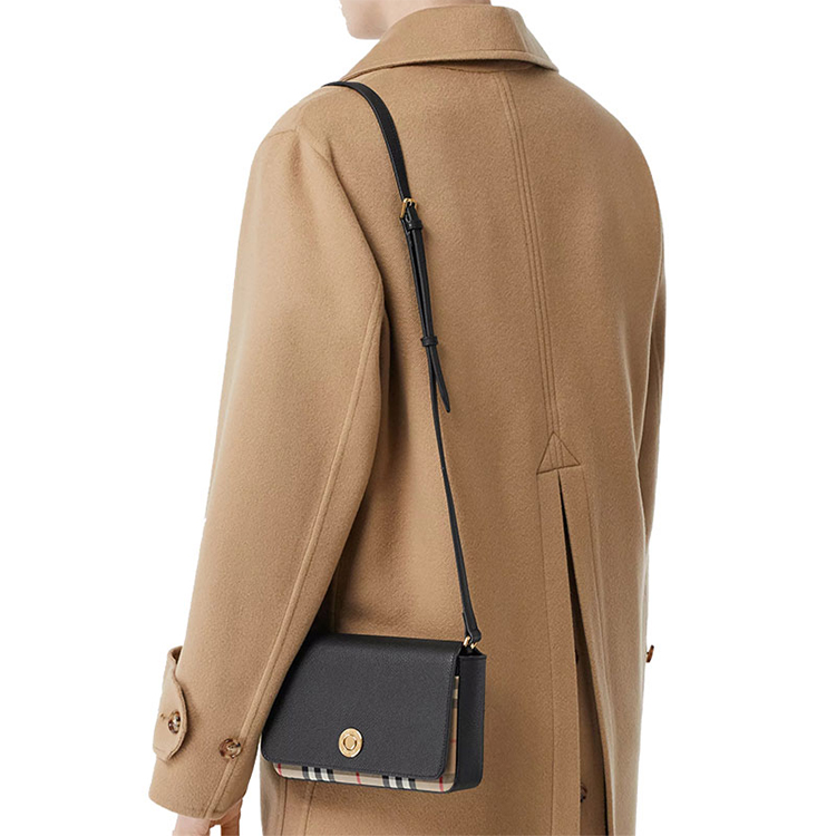 Эта изысканная сумка через плечо изготовлена из зернистой кожи итальянского дубления с вставками в винтажную клетку. Её можно носить на плече, через плечо или как клатч.