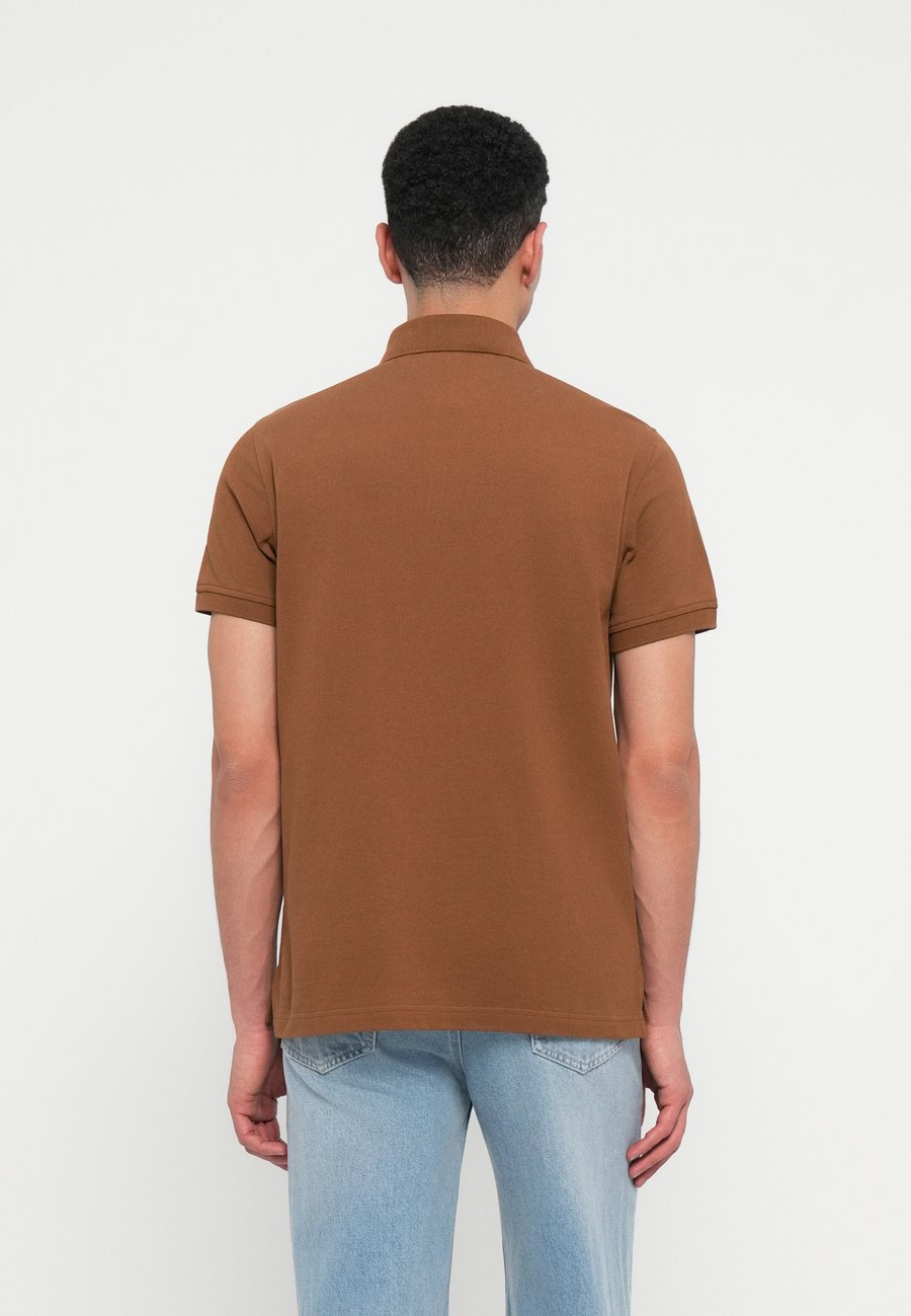 Небольшая этикетка на уровне груди. Воротник: рубашка поло.Материал и уход