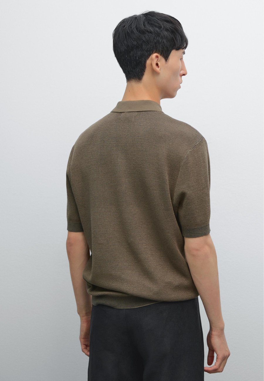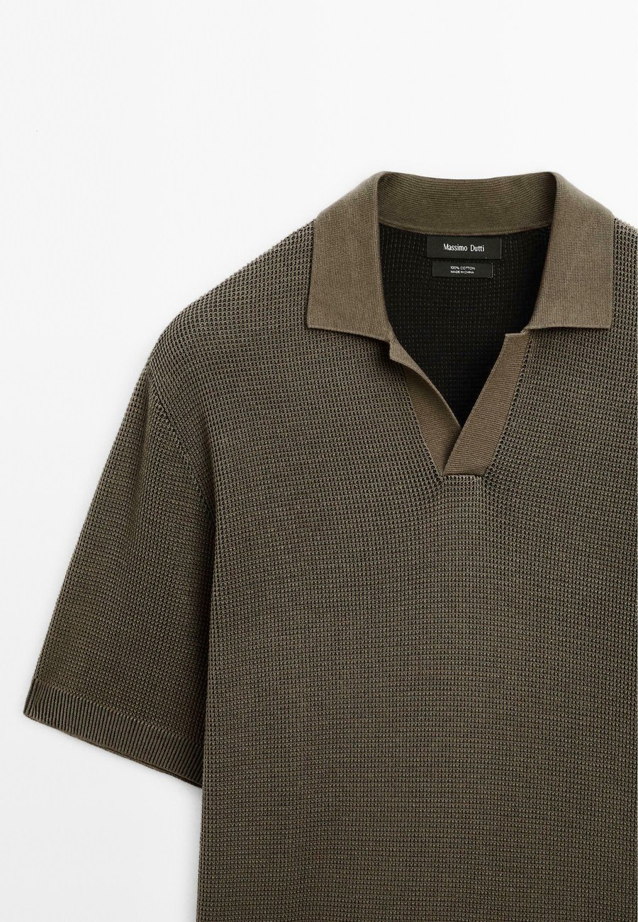 Текстурированная ткань. Короткие рукава. Рубашка-поло из 100% хлопкового трикотажа. Воротник-стойка. Детали контрастного цвета. Вырез горловины: V-образныйМатериал и уход