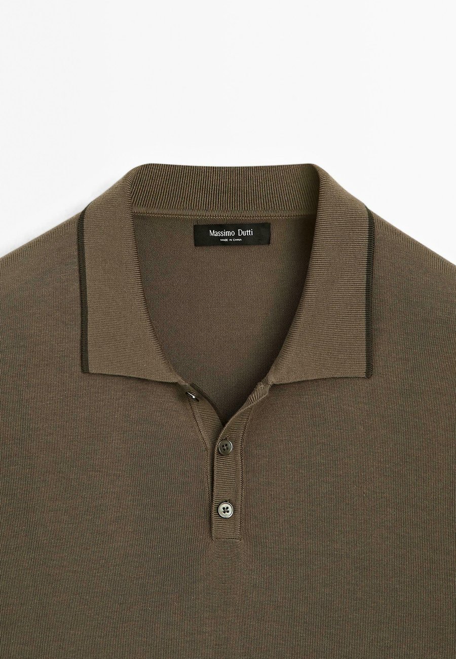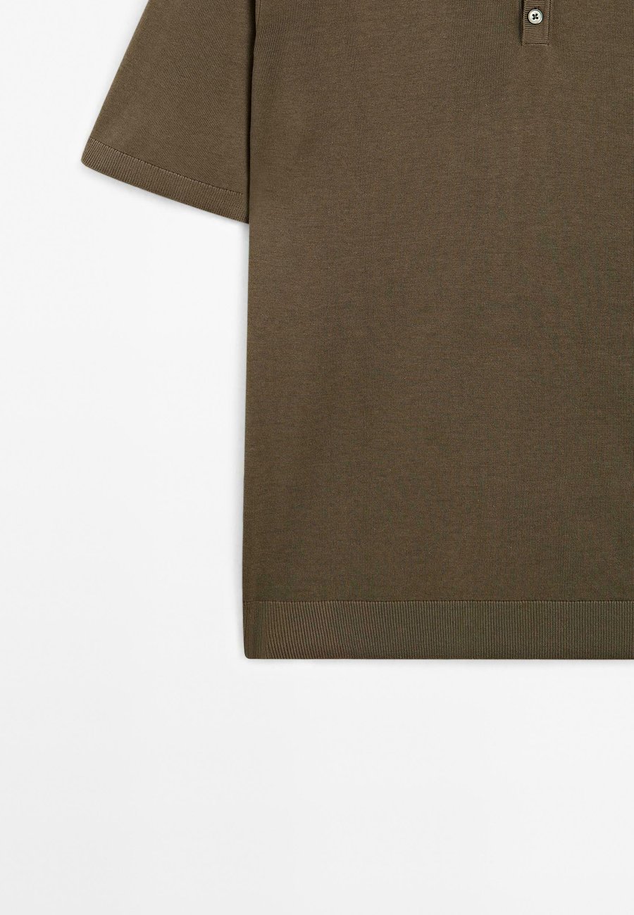 Короткие рукава. Вязаный свитер из смесовой хлопковой ткани. Контрастная отделка воротника. Воротник на пуговицах. Воротник: рубашка полоМатериал и уход