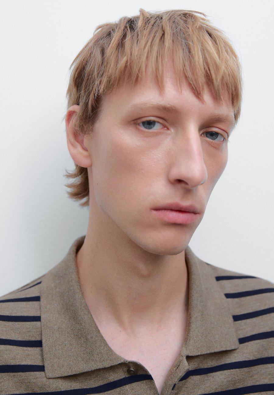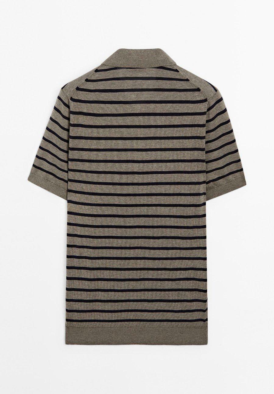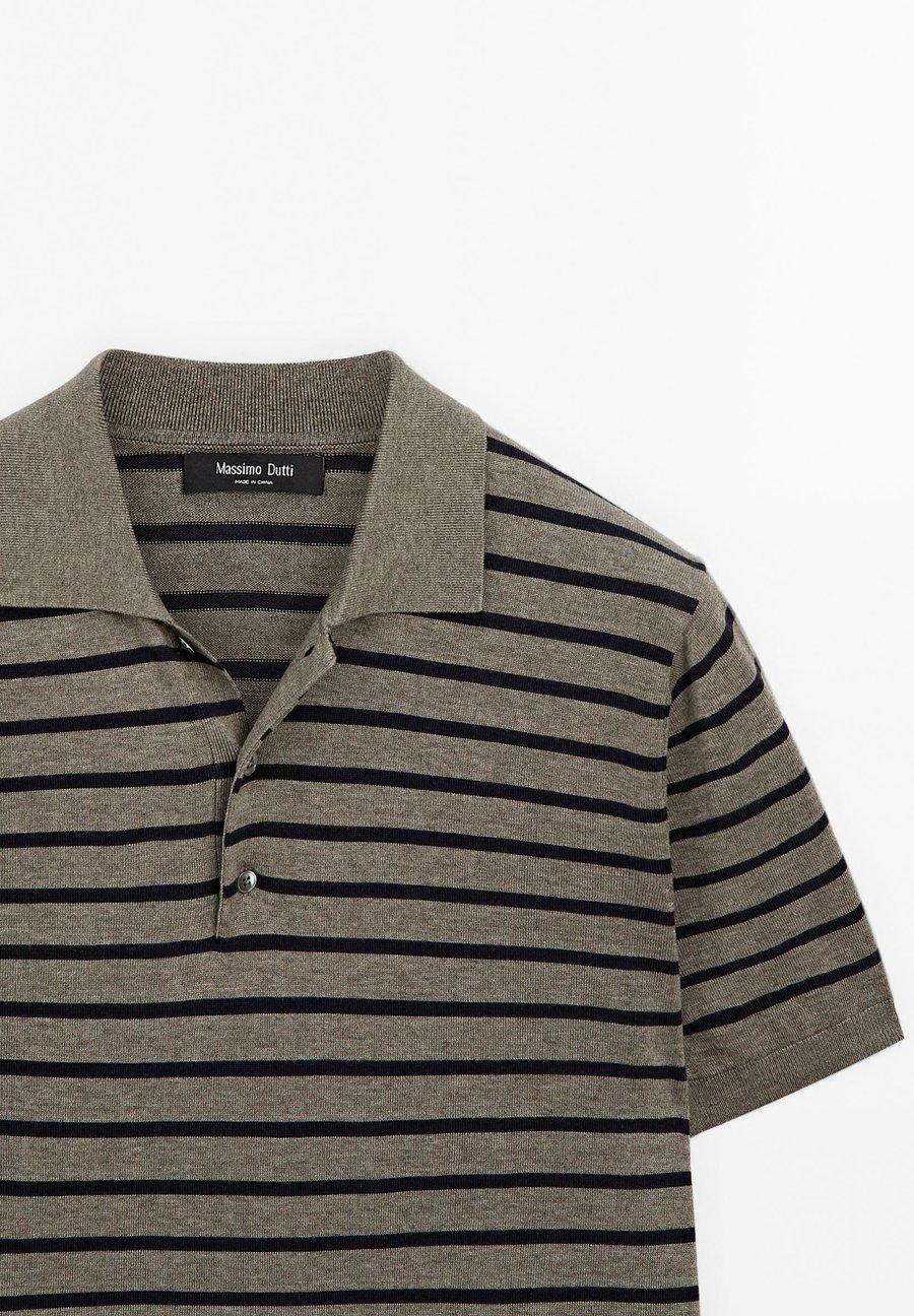 Полосатая отделка. Короткие рукава. Рубашка-поло из смесовой хлопковой ткани. Воротник на пуговицах. Воротник: Рубашка-полоМатериал и уход