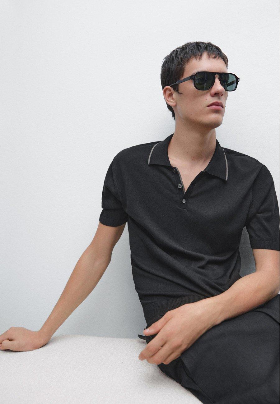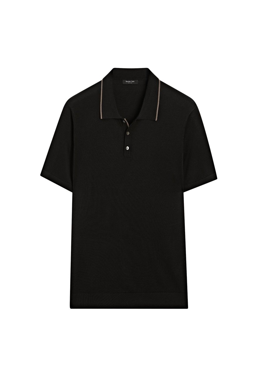Короткие рукава. Вязаный свитер из смесовой хлопковой ткани. Контрастная отделка воротника. Воротник на пуговицах. Воротник: рубашка полоМатериал и уход