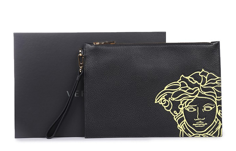 VERSACE Кошелек из коровьей кожи, клатч Regular мужской черный