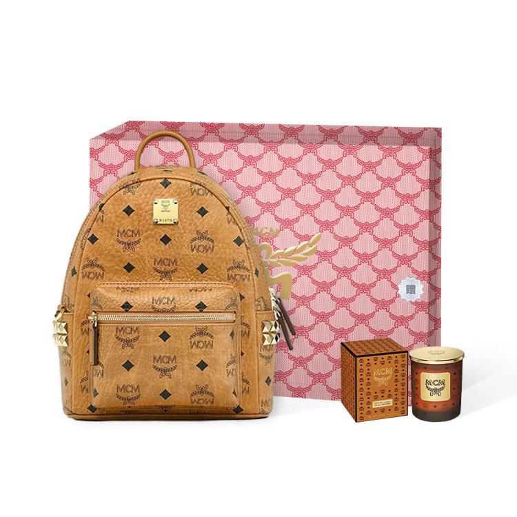 Stark Classic Pattern Canvas With Nappa Leather Backpack Mini Women's Cognac MCM, basic set (bag+dust bag)