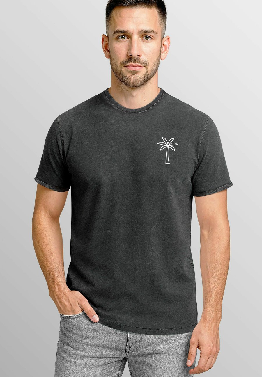 Футболка Neverless MIT PALMEN LOGO - VINTAGE WASCHOPTIK KURZARM, Schwarz/Anthracite