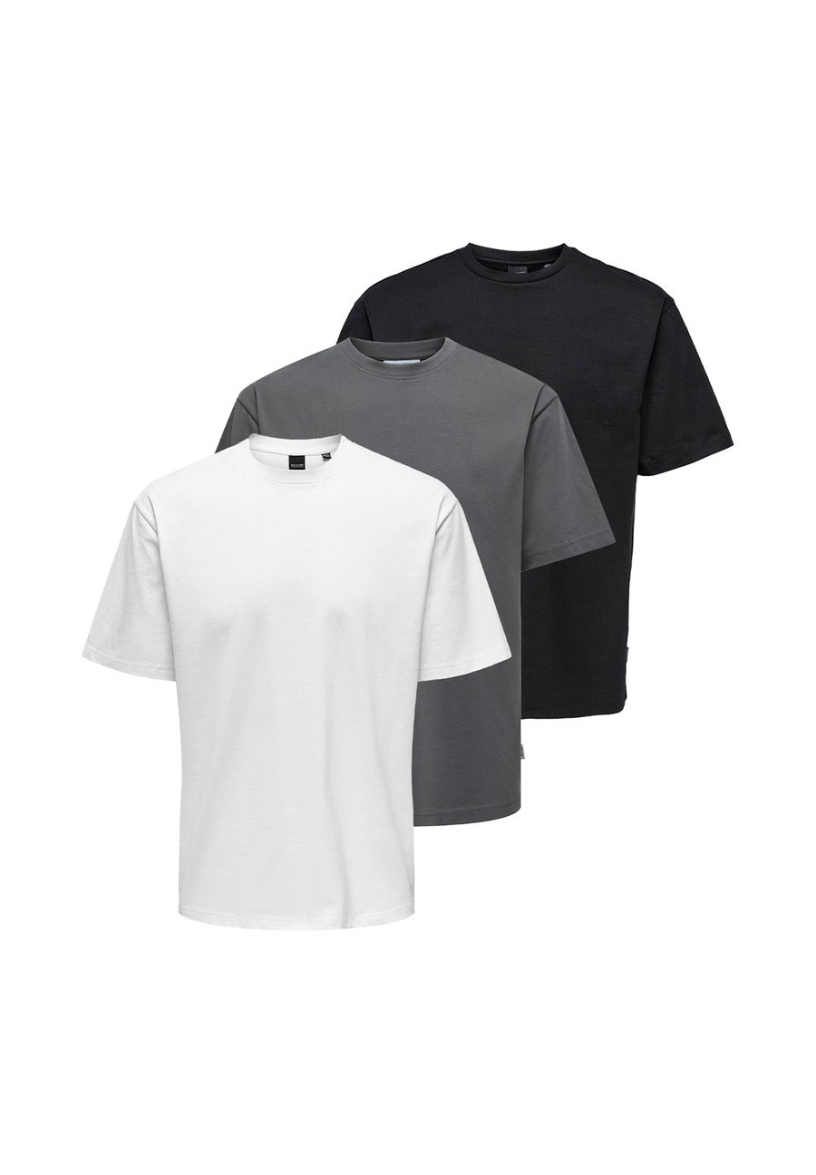 Футболка Only & Sons 3ER PACK FRED, Schwarz/Weiß/Dunkelgrau/Mottled Dark Grey