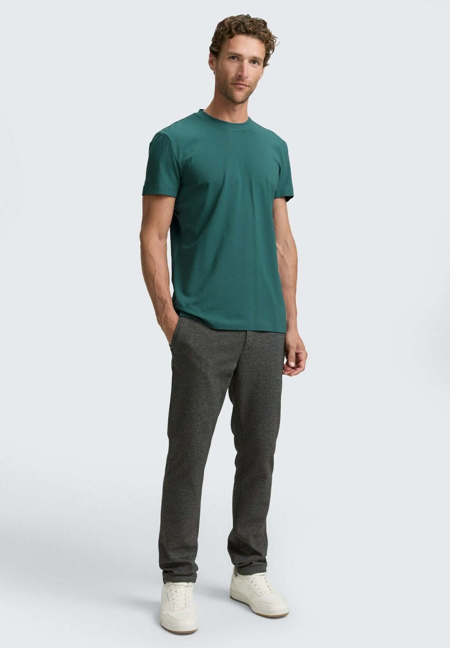 Базовая футболка однотонного цвета. Идеально подходит для сочетаний с другой одеждой и в качестве нижнего белья. Изготовлена из однослойного трикотажа из хлопка с добавлением эластана. Вырез горловины: круглый.Материал и уход