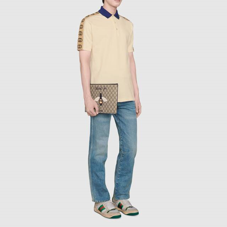 Узор GG гармонично сочетается с новыми принтами и дизайнами каждый сезон. Изображение пчелы, ставшее одним из фирменных знаков бренда, украшает центр этой тонкой сумки-клатча, изготовленной из высококачественного биоразлагаемого материала GG Supreme. Фраза «Blind for Love» («Слепой для любви») обрамляет дизайн.