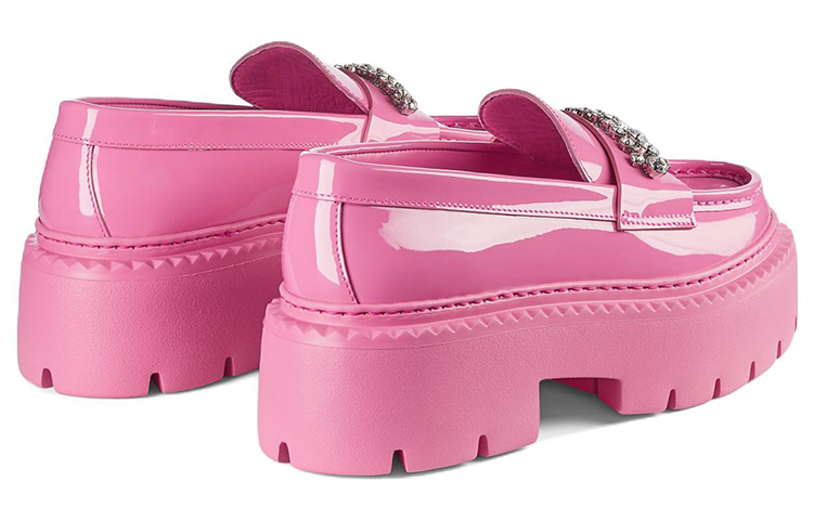 Лоферы серии BRYER LOAFER FLAT изготовлены из лакированной кожи карамельно-розового цвета и украшены изысканными кристаллами. Их яркий и очаровательный дизайн добавит очарования сдержанным образам, делая их более элегантными. Платформа и круглый носок обеспечивают комфортную носку.