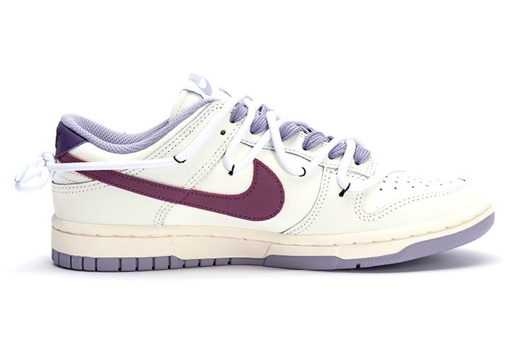 Эти кроссовки созданы на основе оригинальных женских низких кроссовок Nike Dunk Low «Indigo Haze» синего, розового и белого цветов. Дизайн вдохновлён малиной и белым шоколадом, а цветовая гамма включает малиново-фиолетовый и тёплый белый. Теплая белая основа, сохраняя лаконичный и простой вид, делает кроссовки подходящими для повседневной носки. Логотип Swoosh, подчёркнутый малиново-фиолетовым, создаёт уникальный и изысканный штрих, а белые перфорированные шнурки дополняют общий дизайн.