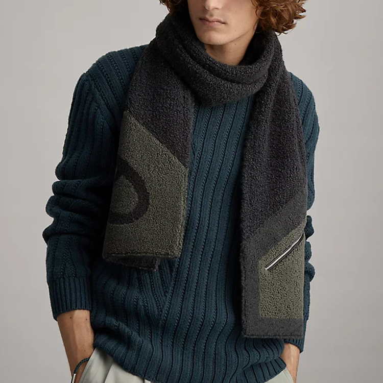 HERMES Вязаный шарф мужской черный