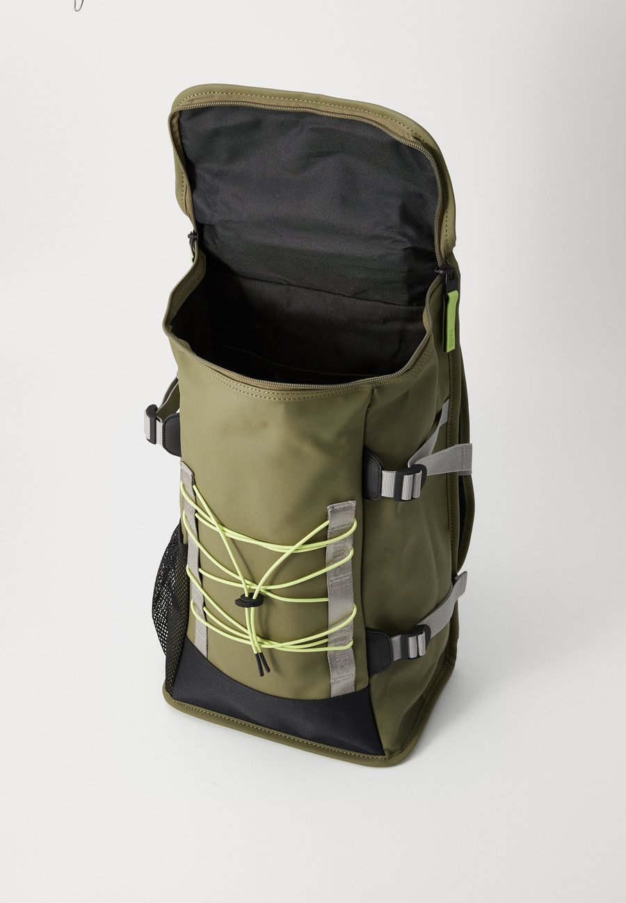 Мягкие регулируемые по длине плечевые лямки, регулируемый по высоте и ширине нагрудный ремень, дышащая спинка, вертикальное отделение на молнии на спине, верхнее отделение на молнии, петли для крепления, компрессионные ремни, эластичный мешок с затягивающимся шнурком, два внутренних кармана. Дополнительно: Компрессионные ремни.Материал и уход