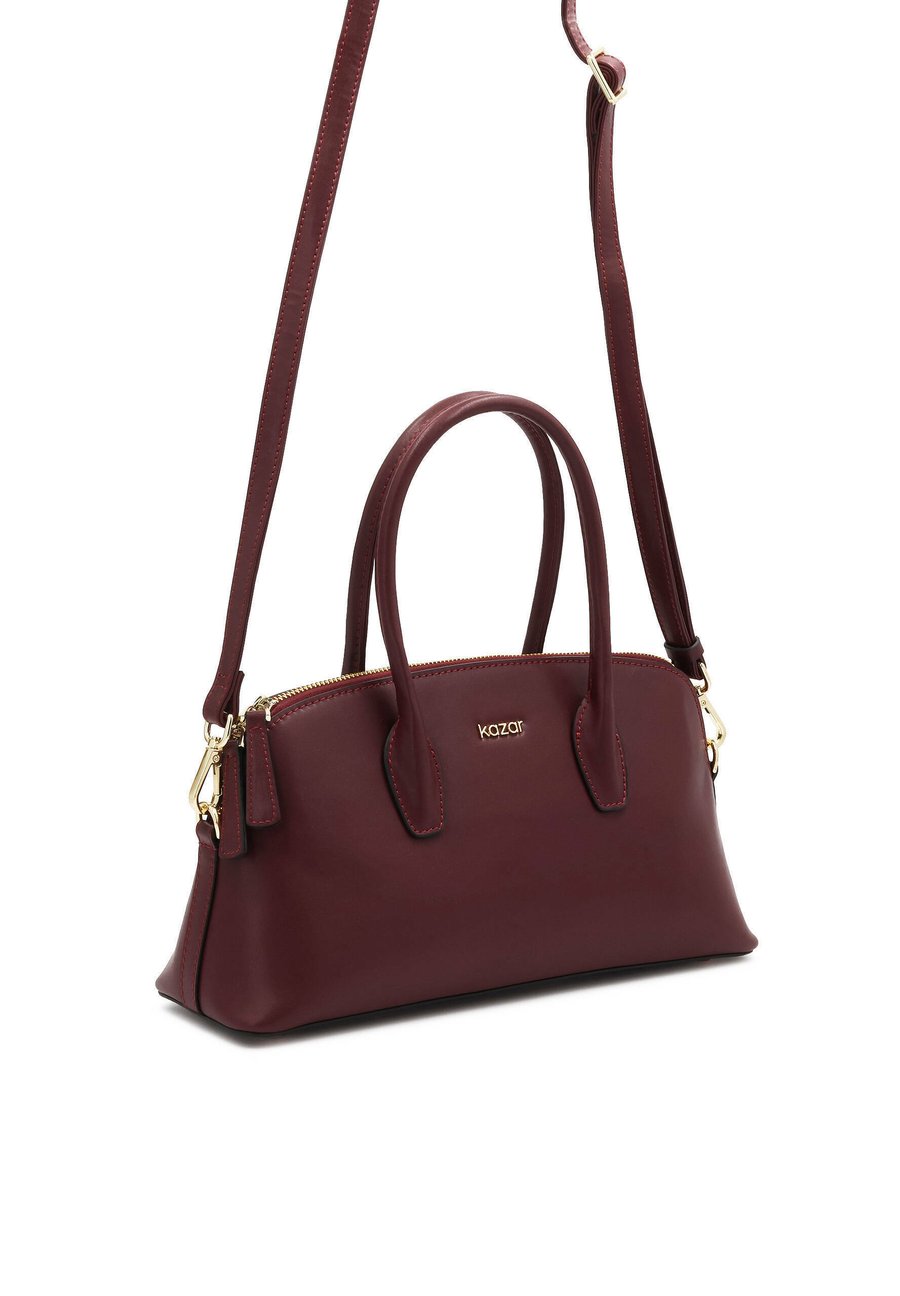 Элегантная и универсальная - сумка из натуральной кожи глубокого бордового цвета станет отличным выбором для женщин, которые любят сочетать классику с изысканным стилем. Тонкая, слегка закругленная форма придает силуэту легкость, а гладкая текстура кожи подчеркивает ее роскошный характер. Застегивается на молнию теплого золотистого оттенка, обеспечивая безопасное и стильное хранение повседневных мелочей. Изящные золотые детали и сдержанный логотип добавляют элегантности, не делая сумку слишком вычурной. Сумка поставляется с длинным съемным ремешком, позволяющим носить ее на плече или через плечо - в зависимости от стиля и случая. Это идеальный аксессуар к пальто, костюму, а также к более повседневным образам - он всегда добавляет нотку элегантности. Характеристики товара: Сумка имеет 1 основное отделение, закрывающееся на молнию. Внутри есть 1 карман на молнии и 1 открытый карман. Сумка имеет металлические ножки на дне. Сумка имеет съемный регулируемый плечевой ремень. Отделения: Карман для мобильного телефона, просторное внутреннее отделение.Материал и уход