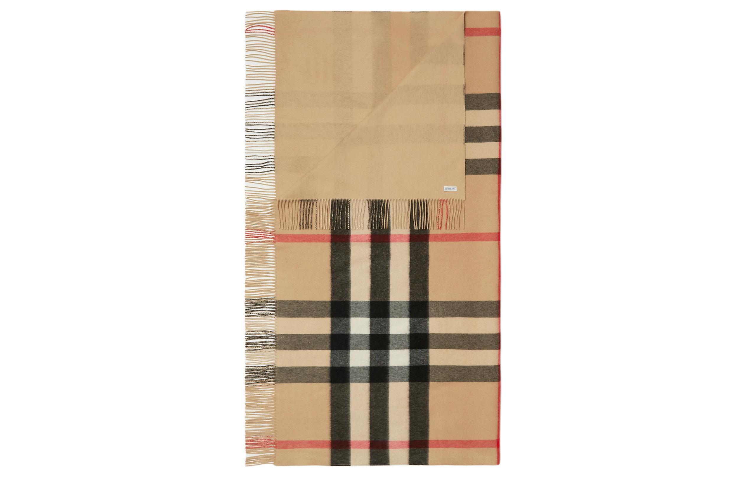 Клетчатый шарф с бахромой Burberry, бежевый 55 804₽