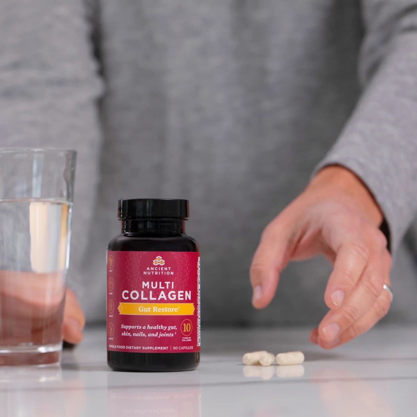 Биологически активная добавка, состоящая из 10 типов коллагена и ингредиентов, необходимых для поддержания здоровья кишечника. Клинически изученный ферментированный коллаген мембран яичной скорлупы, обеспечивающий коллаген типов I, II, III, IV, V, VII, VIII, X, XII, XXII поддерживает здоровье суставов, кишечника и кожи. Гидролизованные пептиды бычьего коллагена содержат коллаген типов I и III и обеспечивают поддержку здоровья ногтей, кишечника, суставов и кожи. Гидролизованные пептиды рыбного коллагена типа I из экологически чистых источников минтая, трески и пикши (сига) из вод Северной Америки, который участвует в формировании костей, кожи, фасций, связок, сухожилий и кровеносных сосудов. Клинически изученные пробиотики SBO оказывают дополнительную поддержку для пищеварительной системы. Традиционные суперпродукты поддерживают здоровье кишечника. Ксило-олигосахариды помогают поддерживать здоровую популяцию пробиотиков и микрофлоры в кишечнике.