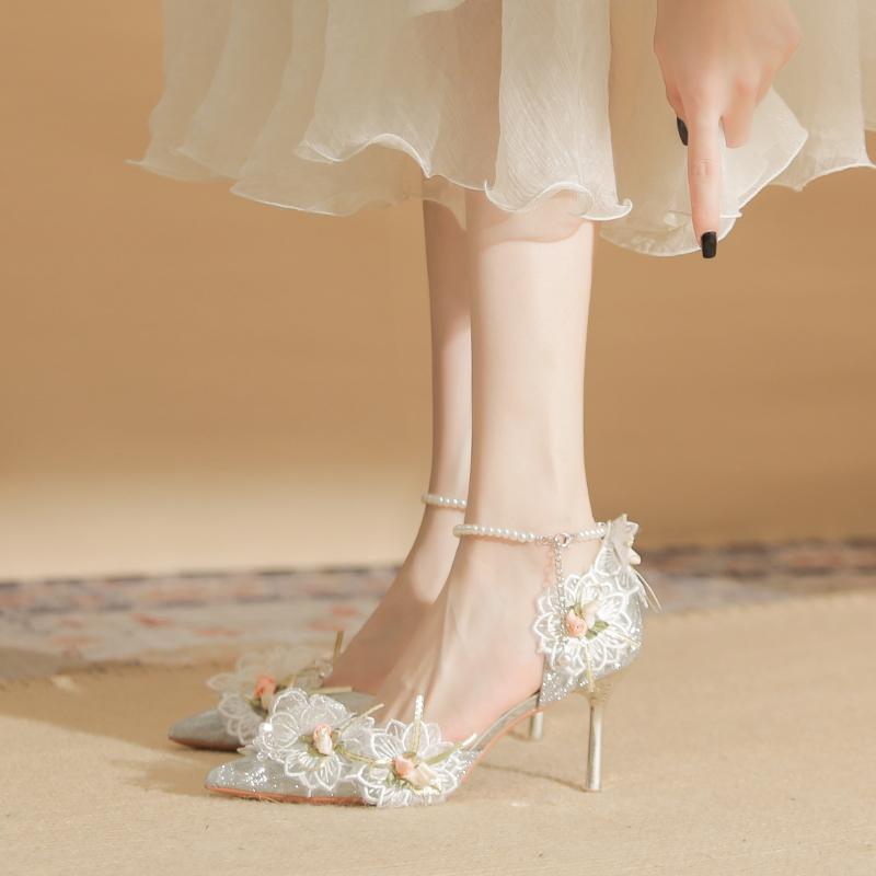 Ainer-cat Ainer cat Slim Heel High Heels 8cm Women's Silver 6 600₽