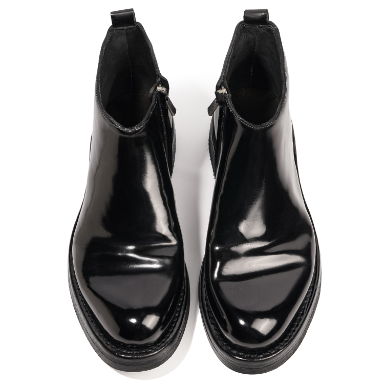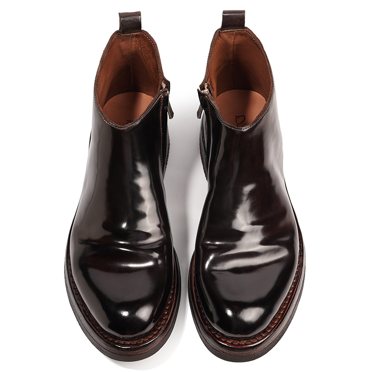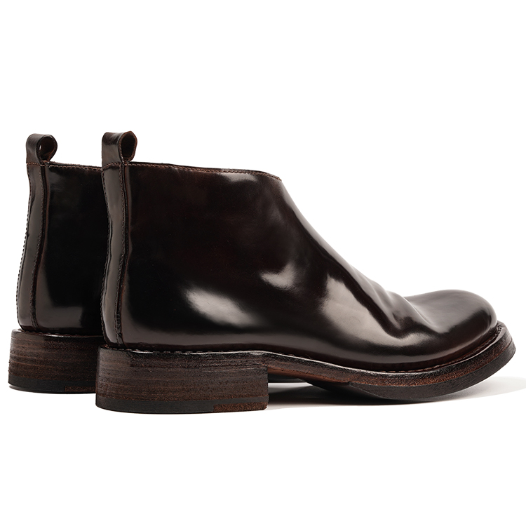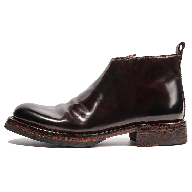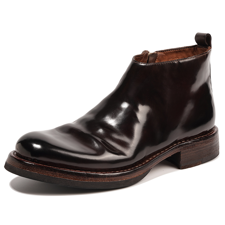 Конская кожа известна своей тонкой текстурой и мелкими порами, и используется только 1/8 крупа лошади, что подчеркивает ее редкость и драгоценность. Конская кожа имеет естественно полированный вид, продольные волокна и устойчива к морщинам при сгибании, что делает ее очень прочной и улучшается со временем. Подкладка и стелька полностью из конской кожи обеспечивают отличную воздухопроницаемость, впитывание пота и мягкость, обеспечивая комфортное ношение, сохраняя ноги сухими, уменьшая запах и лучше приспосабливаясь к форме стопы по мере использования. Туфли изготовлены из нескольких слоев коровьей кожи с прошитыми вручную рантами, в отличие от современных процессов изготовления обуви, таких как склеивание и вулканизация. Если подошва не изнашивается и шов, соединяющий подошву и сапожник, полностью не рвется, эти туфли исключительно долговечны. Прочная, нескользящая V-образная резиновая подошва добавлена к пятке.