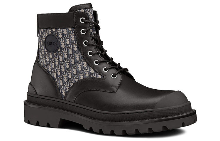Ботильоны Dior Explorer изготовлены из гладкой чёрной телячьей кожи и украшены бежево-чёрными жаккардовыми вставками Dior Oblique по бокам. Застёжка-молния сзади облегчает надевание, а нашивка «DIOR» дополнена рифленой резиновой подошвой с укреплённым резиновым носком в той же цветовой гамме. Эта современная модель отлично сочетается с любым нарядом этого сезона.