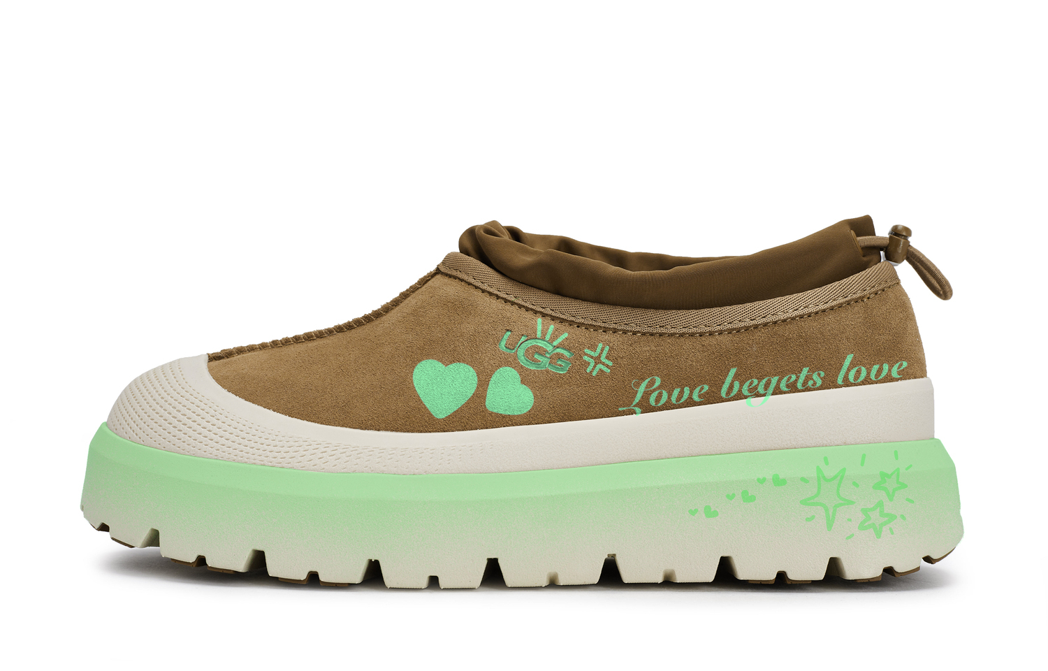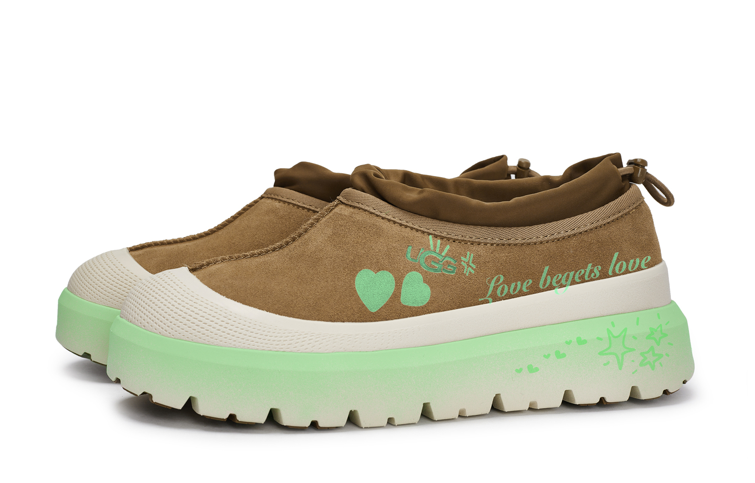 Эти кроссовки изготовлены из оригинальной кожи UGG, слипоны, низкие, унисекс, каштанового цвета. Насыщенный коричневый цвет, как основной цвет, олицетворяет всеохватность Земли, несущей в себе все наши эмоции. Нарисованное вручную гневное выражение лица, переплетённое с сердцами, напоминает нам о том, что сила любви способна усмирить бури и согреть сердца. Надпись «любовь порождает любовь» сбоку - это не просто слоган, а заявление миру. Эти кроссовки можно носить и стирать как обычно. Во время носки избегайте интенсивных физических нагрузок и царапин от острых предметов. Не используйте концентрированные органические растворители для чистки; рекомендуется использовать мягкую щётку с подходящей концентрацией моющего средства. На изображении представлен реальный продукт; возможны незначительные отклонения в цвете. Все кроссовки изготавливаются вручную, и каждая пара может иметь небольшие различия. В комплект входит специальная коробка для обуви.