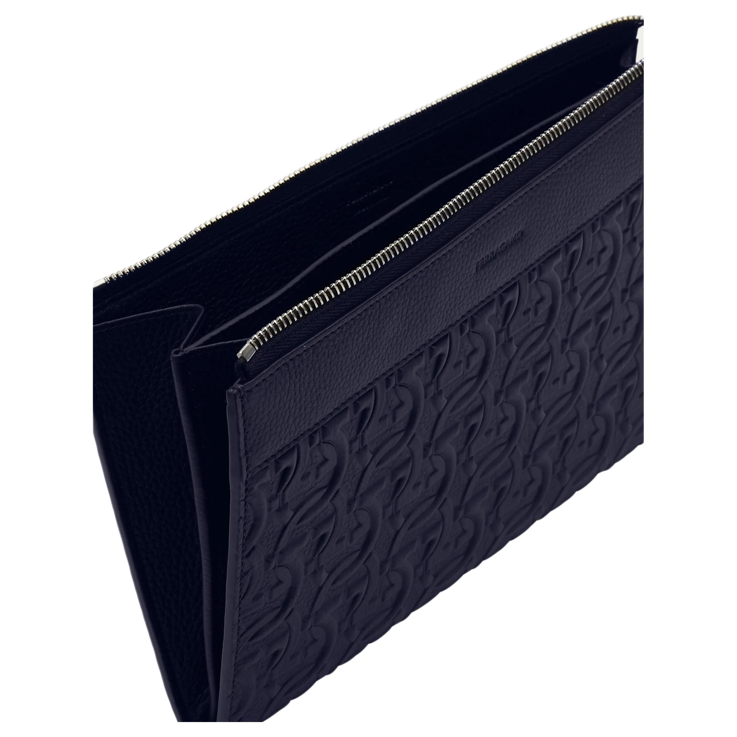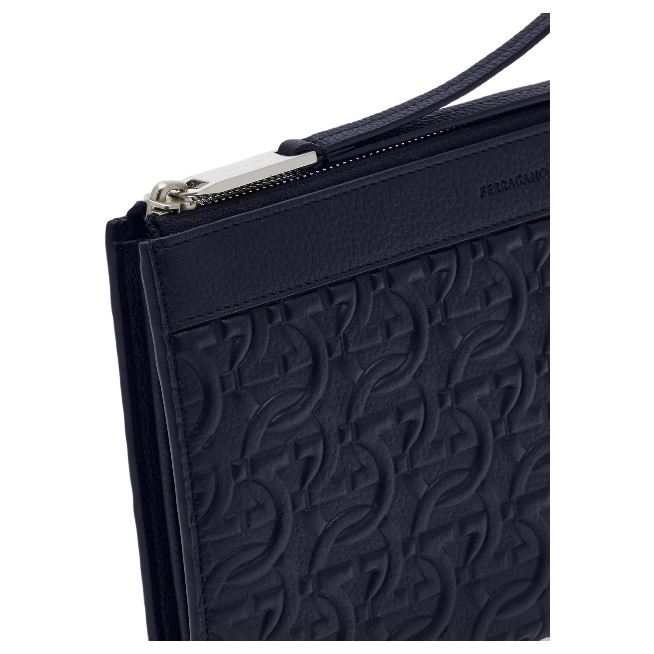 Ferragamo Кожаный клатч GANCINI для мужчин Midnight Blue