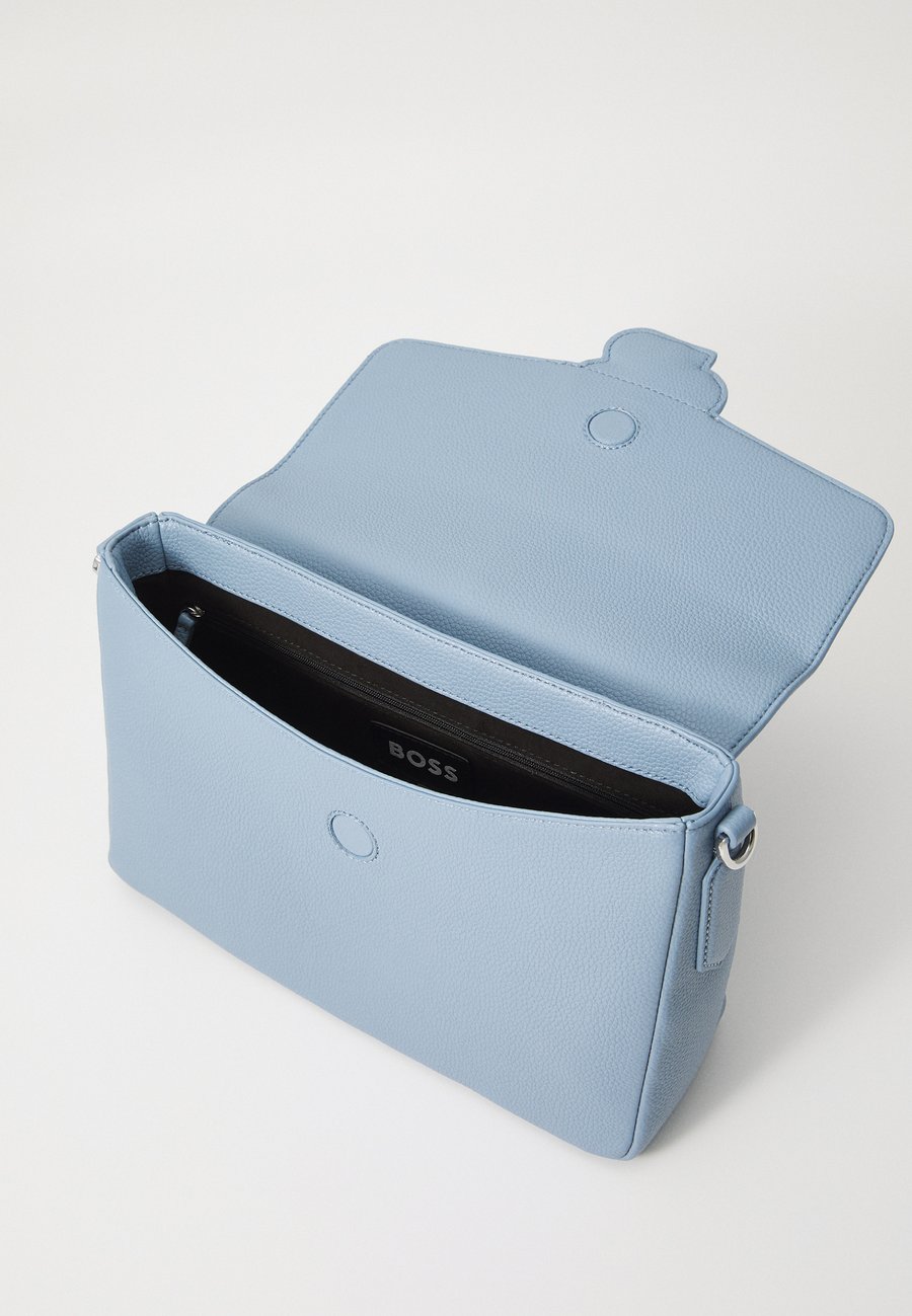 Фирменная сумка-седло от BOSS Womenswear. Эта сумка с мягкой монограммой Double B на застежке изготовлена из зернистой синтетической ткани с покрытием. Синтетическая ткань с покрытием, иногда называемая искусственной кожей, - это ткань, созданная для того, чтобы имитировать натуральную кожу и/или иметь матовую, глянцевую, гладкую или текстурированную поверхность с покрытием. Размеры: 29 x 21 x 9 см. Отделения: отделение на молнии, основное отделение.Материал и уход