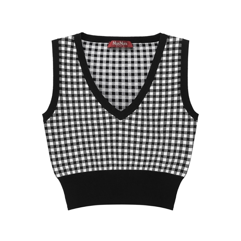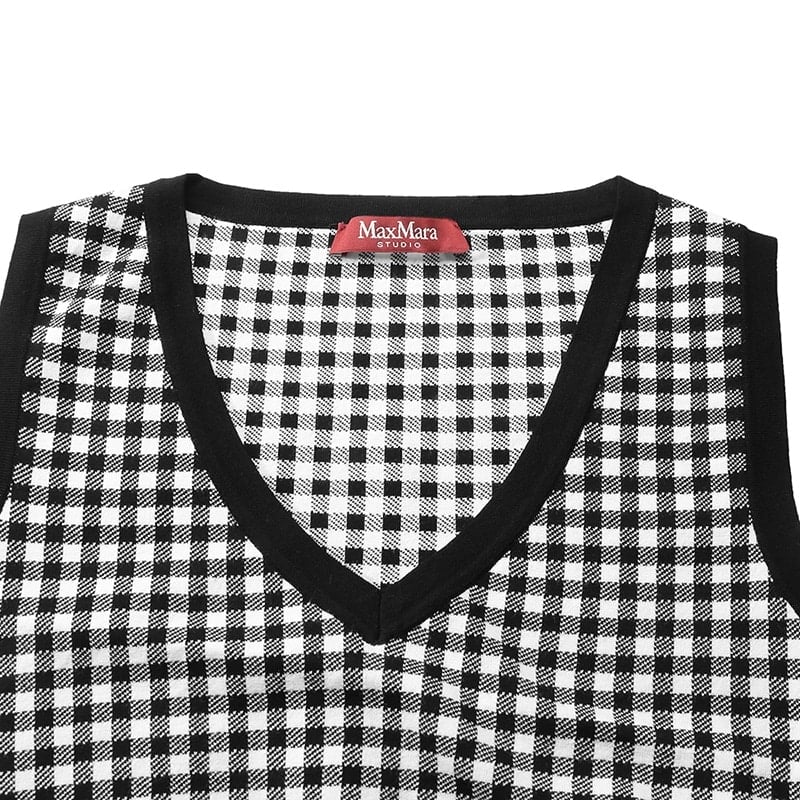 Топ без рукавов с V-образным вырезом MaxMara Studio, черный белый