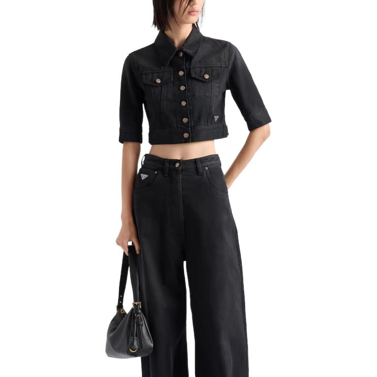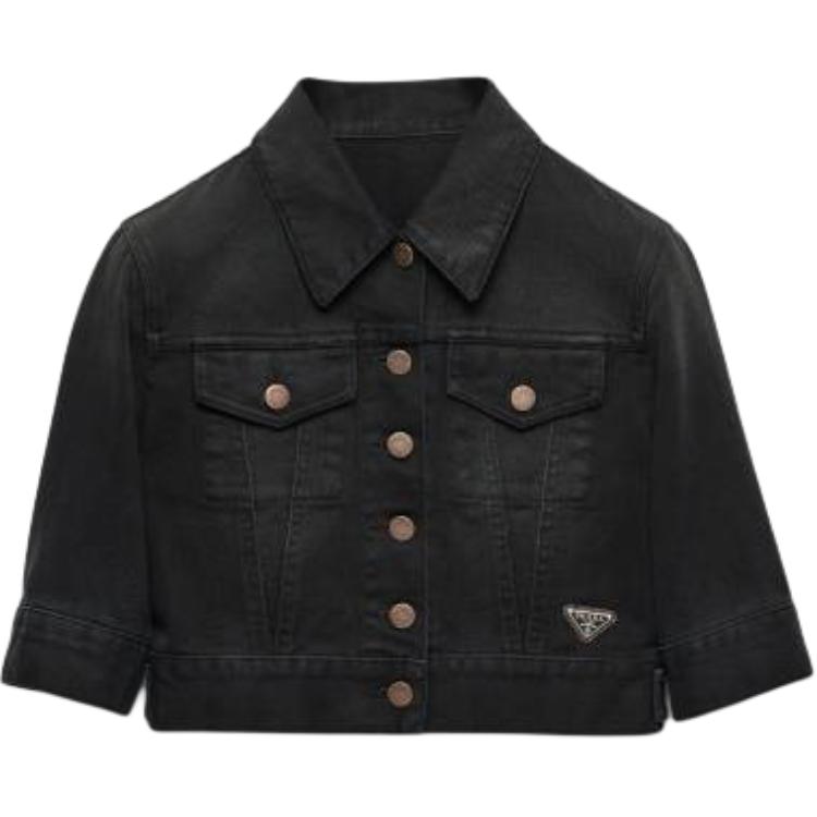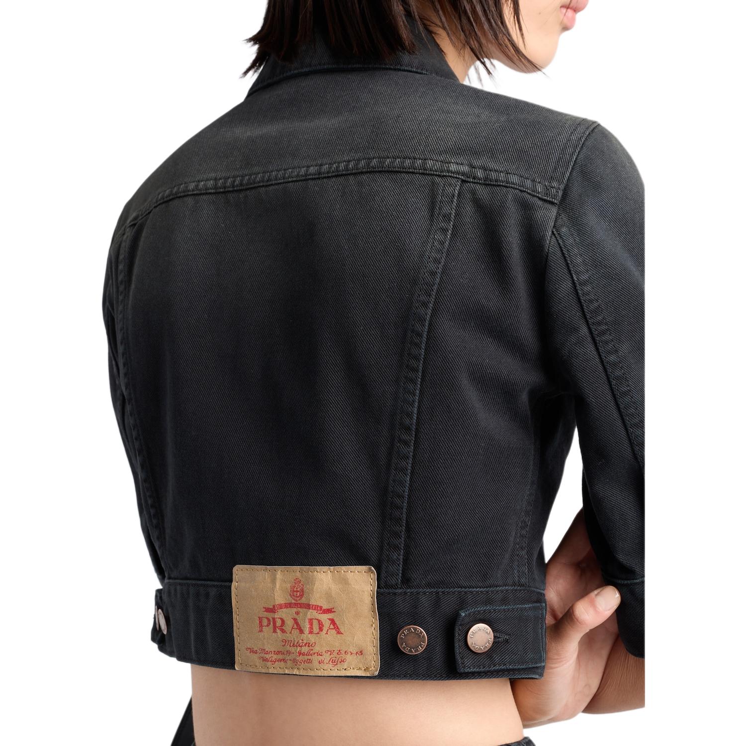 Кроп-джинсовая куртка с треугольным логотипом PRADA, черный