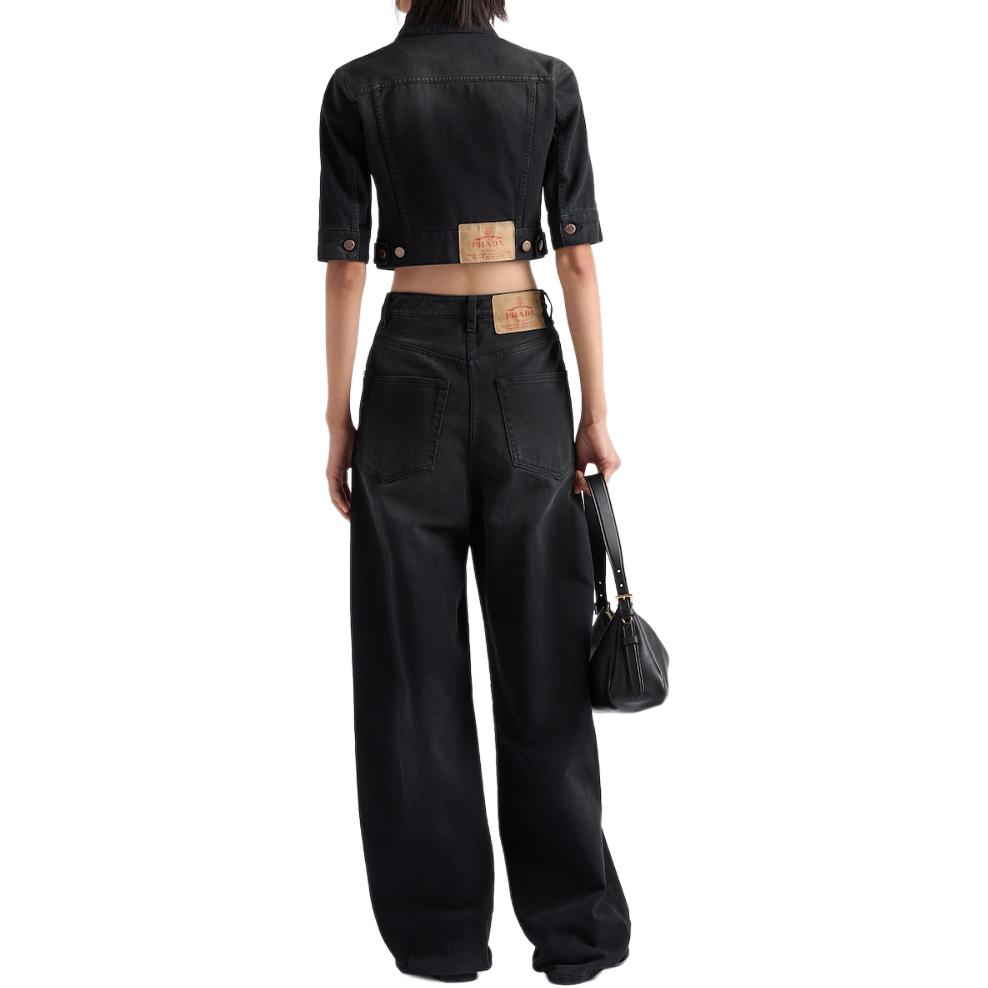 Кроп-джинсовая куртка с треугольным логотипом PRADA, черный 185 321₽