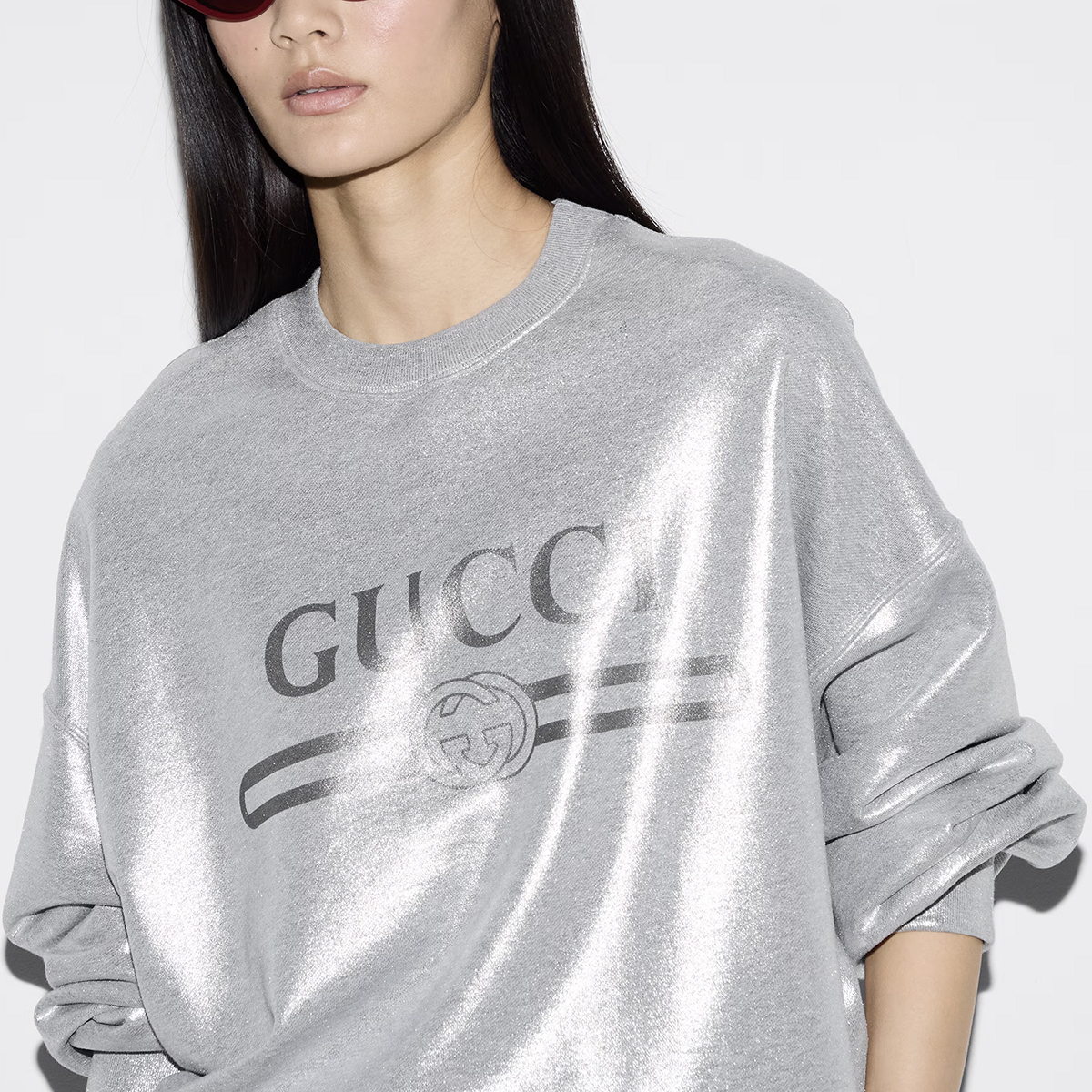 Металлический свитшот GUCCI, серебряный