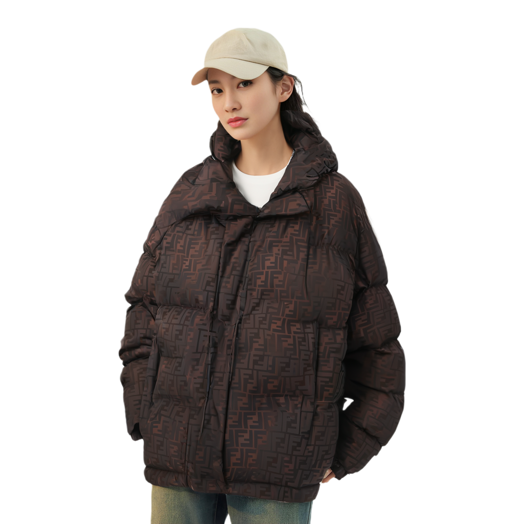 Куртка-пуховик с принтом FF FENDI, коричневый