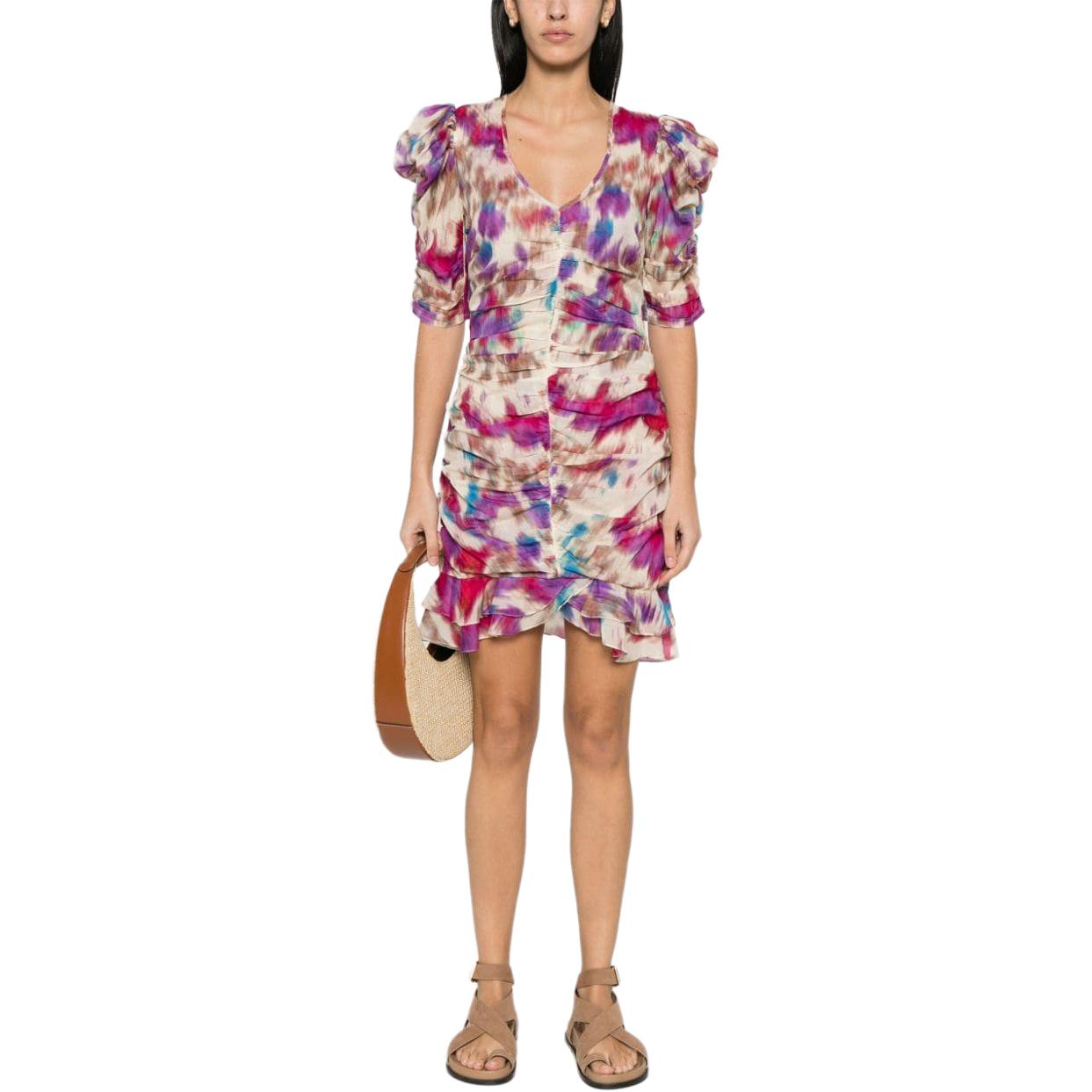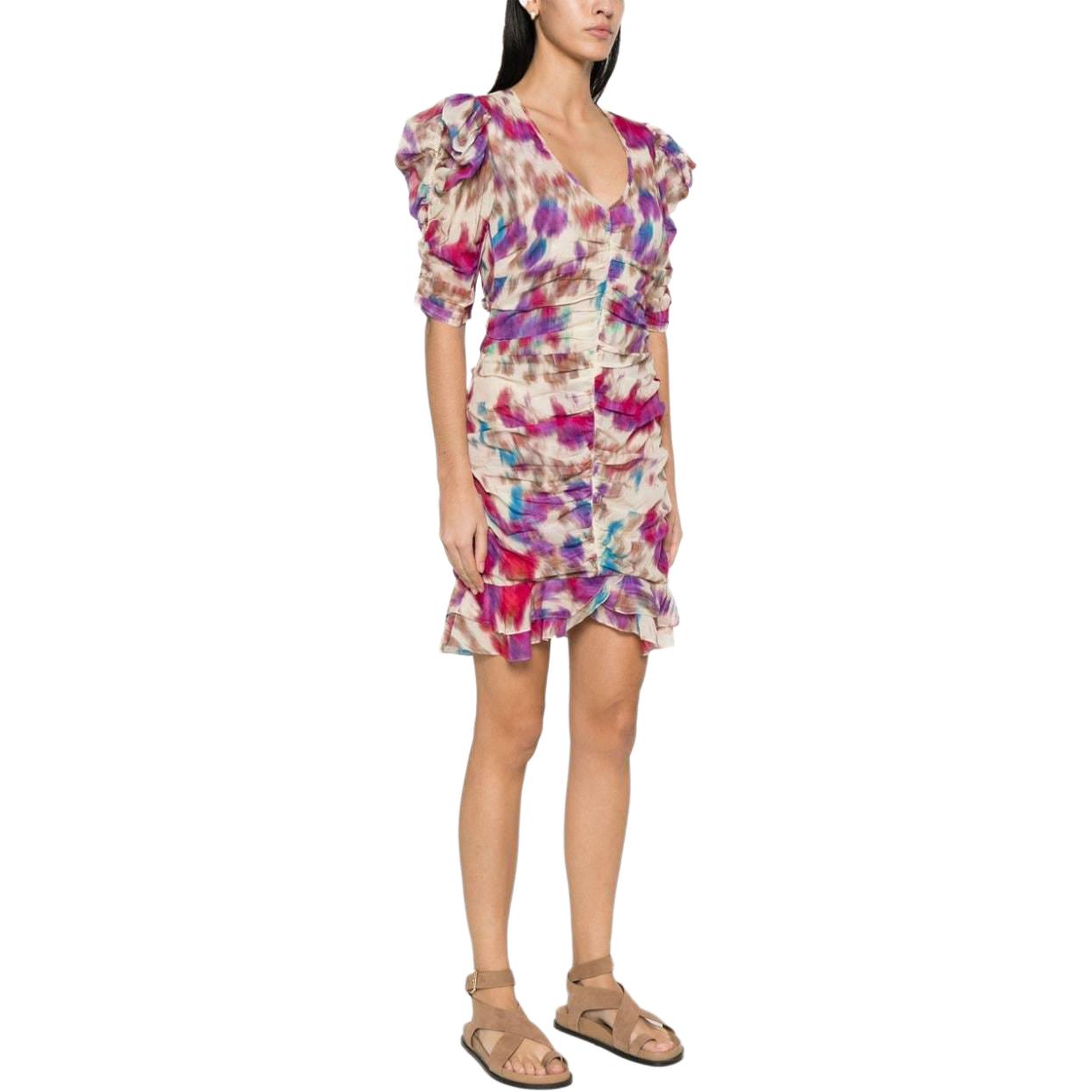 Мини-платье с цветочным принтом и сборками ISABEL MARANT ETOILE, мультиколор