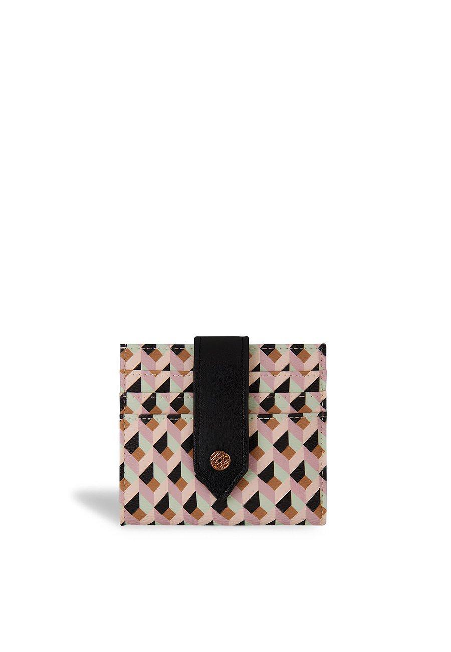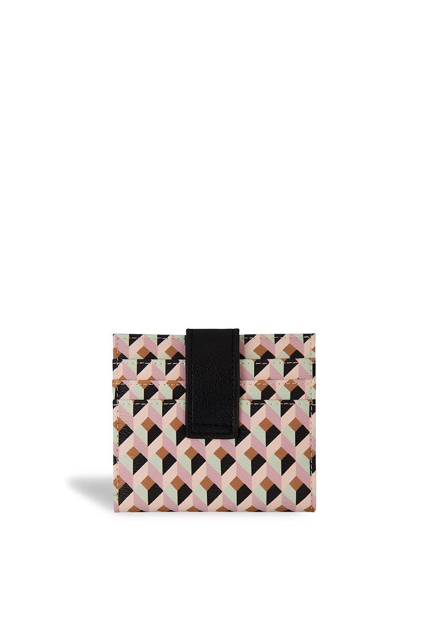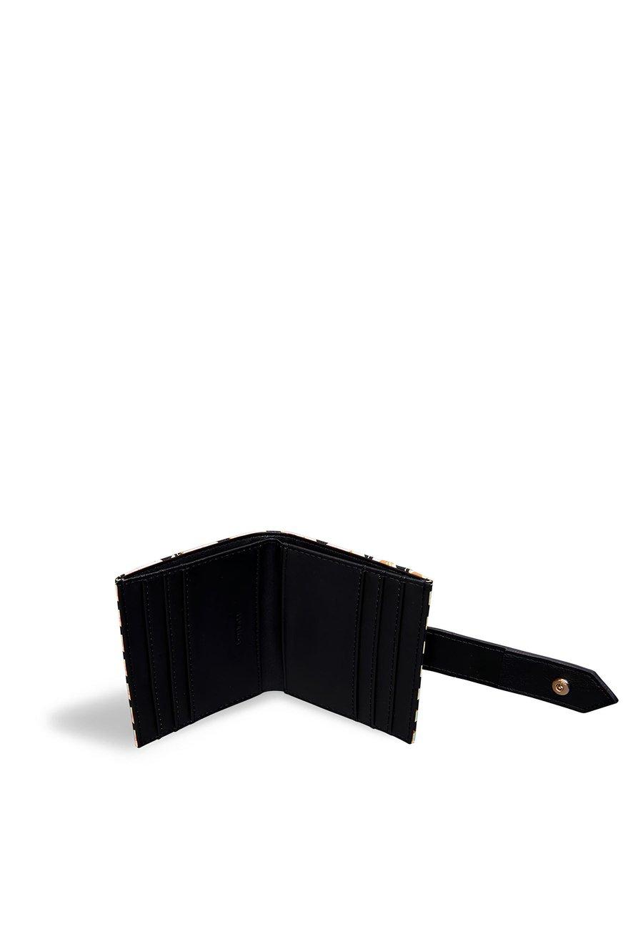 Средний кошелек с принтом от Lonbali имеет квадратную форму с застежкой на кнопку, вмещает шесть карт внутри и шесть карт снаружи. Также имеется дополнительный карман для банкнот. На передней застежке выгравирован логотип бренда. Отделения: отделение для монетМатериал и уход