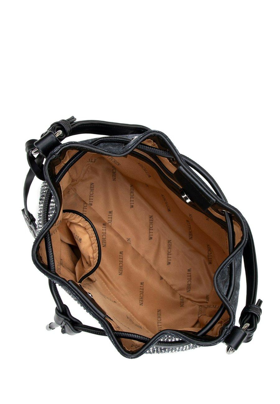 Женственное сияние: элегантная женская сумка-хобо. Выберите сумочку, которая сочетает в себе практичность и легкий блеск. Изготовленная из хлопка с вставками из искусственной кожи на ручке, ремешке, шнурках, основании и отделке, она отличается стилем и современным видом. Застежка на шнурке и магнитная защелка надежно удерживают ваши вещи, а декоративная съемная кисточка добавляет элегантности и позволяет легко менять образ. Небольшие стразы на передней части добавляют немного блеска. Для кого она предназначена? Если вы цените практичность в сочетании с модным дизайном, эта сумка на шнурке идеально подойдет - как для повседневной носки, так и для более элегантных нарядов. Наш совет: сочетайте ее с облегающими джинсами или брюками-кюлотами, мягким свитером и легким пальто, а также дополните образ элегантными ботильонами и изящными украшениями для создания гармоничного, женственного и стильного наряда. Отделения: карман для мобильного телефона, просторное внутреннее отделение.Материал и уход