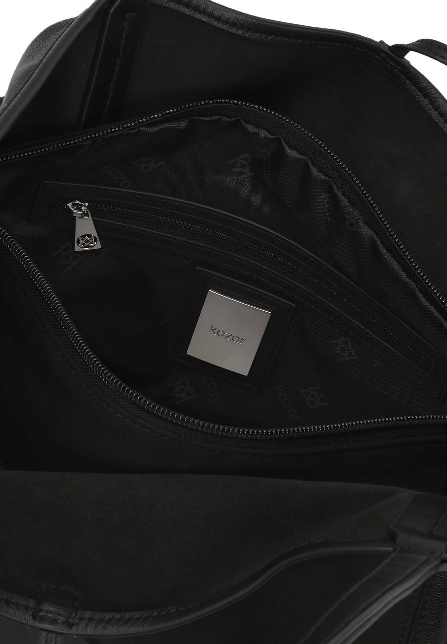 Вместительная сумка через плечо из высококачественной натуральной кожи классического черного цвета восхищает своей свободной, повседневной формой и вневременным стилем. Мягкая конструкция обеспечивает легкость и комфорт при ношении, а длинные, тонкие ручки позволяют удобно носить ее на плече. Внутри сумки скрывается практичная съемная вставка на молнии, которая позволяет лучше организовать хранение вещей и повышает функциональность модели. Минималистичный логотип, расположенный спереди, ненавязчиво подчеркивает элегантный характер всего изделия. Идеально подходит для повседневного стиля, отлично подойдет как для работы, так и для поездок на выходные. Характеристики: Сумка имеет 1 основное отделение, перевязанное кожаными ремнями. Внутри находится съемный тканевый чехол на молнии. Чехол имеет 1 карман на молнии и 1 открытый карман. Размеры чехла: 35 x 20 x 14 см. Сумка имеет плечевые ручки. Отделения: Карман для мобильного телефонаМатериал и уход