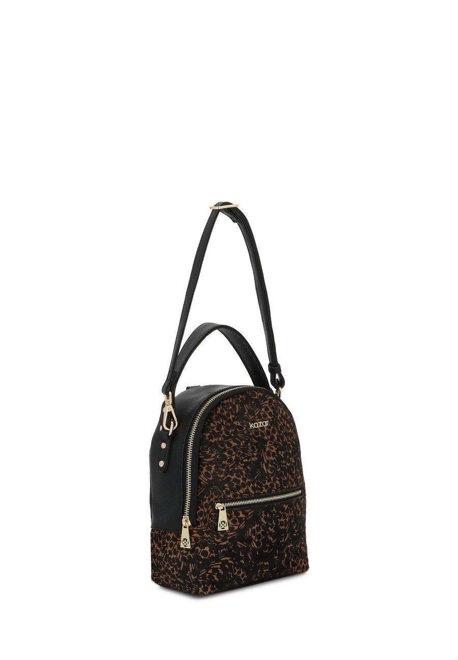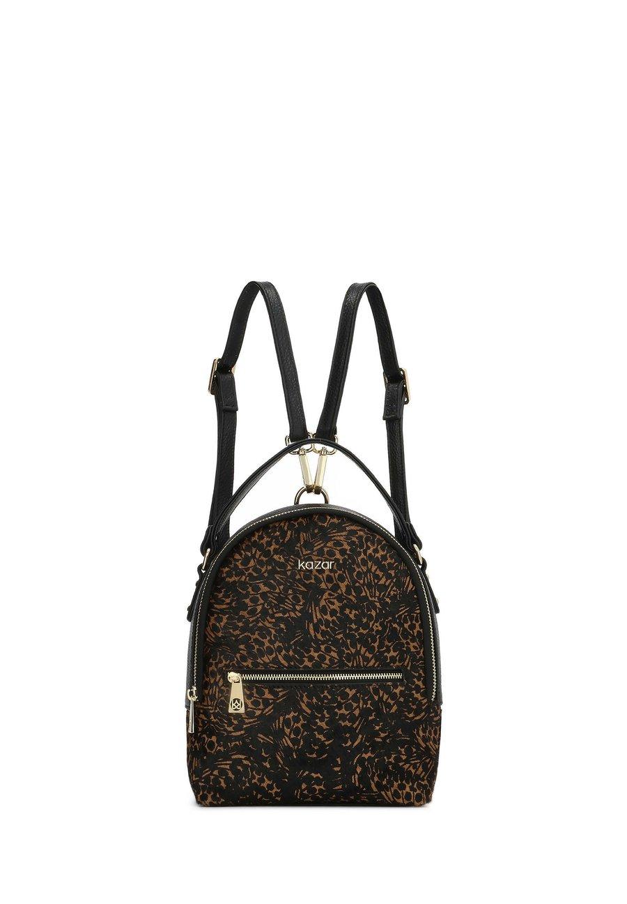 Компактный и невероятно стильный рюкзак сочетает в себе функциональность и модный дизайн. Изготовленный из высококачественной черной кожи, он дополнен передней панелью из натуральной щетинистой кожи с эффектным коричнево-черным анималистическим принтом. Золотые детали и заметный логотип добавляют элегантности. Идеально подходит для женщин, которые ценят современный дизайн, качественное исполнение и универсальность в одном стильном аксессуаре. Детали продукта: Рюкзак имеет 1 отделение, закрывающееся на молнию. Внутри него 1 карман на молнии и 1 открытый карман. На передней части рюкзака расположен вместительный карман на молнии. Регулируемая длина подтяжек. Отделения: Карман для мобильного телефона, просторное внутреннее отделение.Материал и уход
