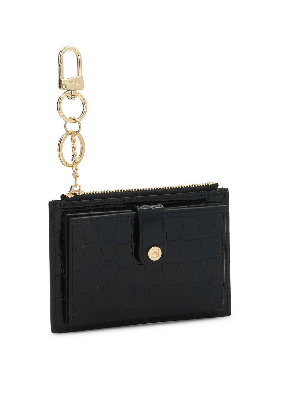 Отличительный акцент в минималистичной форме. Компактный кошелек изготовлен из высококачественной натуральной кожи с тиснением под крокодила, что добавляет ему уникальности и утонченности. Глубокий черный цвет разбавлен золотыми деталями - металлическая молния и элегантная застежка привлекают внимание и придают всему изделию ювелирный вид. Созданный с учетом комфорта и стиля, кошелек сочетает в себе практичность и изысканность. Его небольшой размер позволяет свободно носить его как в большом кошельке, так и в вечернем клатче, не жертвуя при этом порядком и функциональностью. Представленная модель - идеальное предложение для женщин, которые ищут в аксессуарах не только элегантность, но и немного дерзости, ведь роскошь кроется в деталях. Отделения: отделение для монетМатериал и уход
