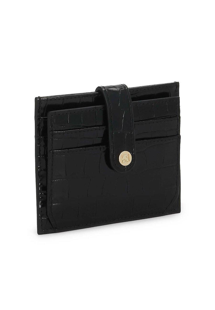 Отличительный дизайн сочетается с классической элегантностью. Кошелек изготовлен из натуральной кожи с тиснением, напоминающим крокодиловую кожу, что добавляет роскоши и уникальной текстуры. Глубокий черный цвет с глянцевой отделкой прекрасно гармонирует с золотой застежкой с едва заметной монограммой - деталь, которая привлекает внимание и подчеркивает престиж изделия. Компактный и элегантный снаружи, внутри он удивляет своей функциональностью - предлагает практичное расположение отделений и карманов для хранения карт, наличных и необходимых вещей. Застежка-ремешок с золотой кнопкой не только эффектно выглядит, но и гарантирует надежное закрытие. Идеально подходит для женщин, которые любят выделяться аксессуарами, не жертвуя при этом комфортом и классом. Кошелек, который подойдет как для повседневной носки, так и для особых случаев. Застежка: кнопка.Материал и уход