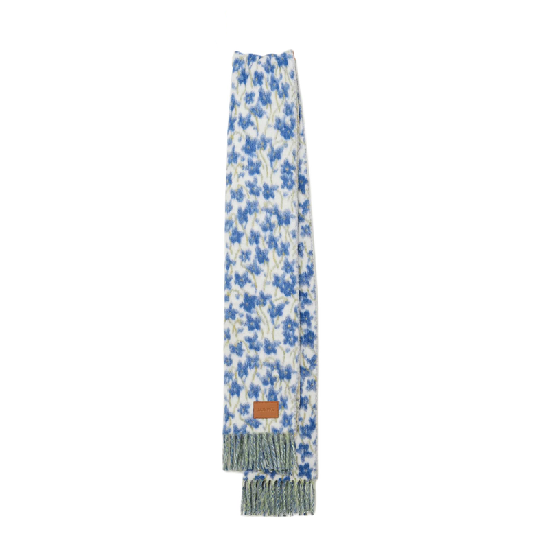 Шарф с бахромой и цветочным принтом LOEWE, синий
