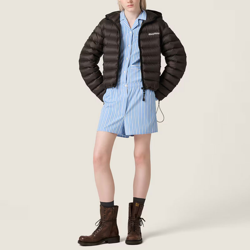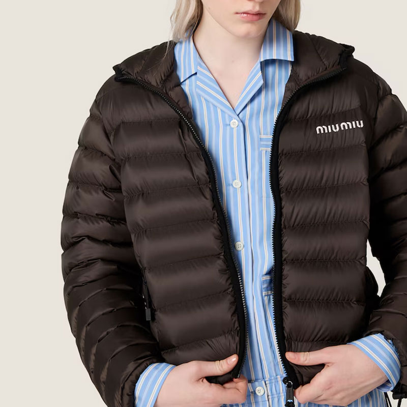 Стеганая утепленная куртка с капюшоном MIU MIU, коричневый