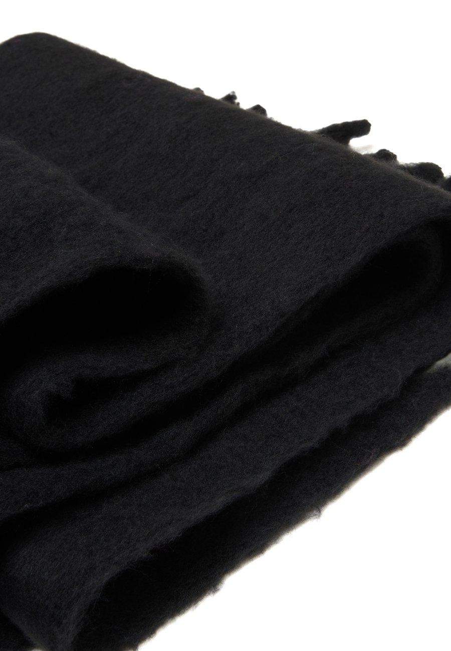 Черный шарф от Piombo - незаменимый аксессуар для каждой женщины. Изготовленный из смешанных тканей, он привнесет нотку элегантности и тепла в зимние месяцы. Идеально подходит для добавления стиля к вашим повседневным нарядам, этот шарф легко дополнит любой образ благодаря своему нейтральному и классическому цвету. Бахрома по краям придает дизайну движение и изысканность. Узор: ОднотонныйМатериал и уход