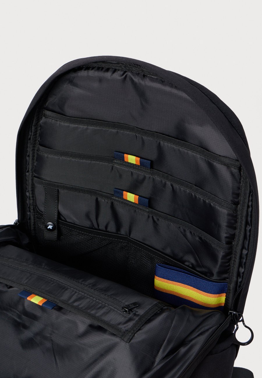 Эластичный держатель для бутылки внутри, два вставных кармана, два сетчатых вставных кармана, два боковых кармана на молнии. Отделения: передний карман, просторное внутреннее отделение, отделение для ноутбука, отделение на молнии, боковые карманы, накладное отделение.Материал и уход